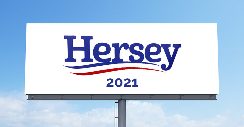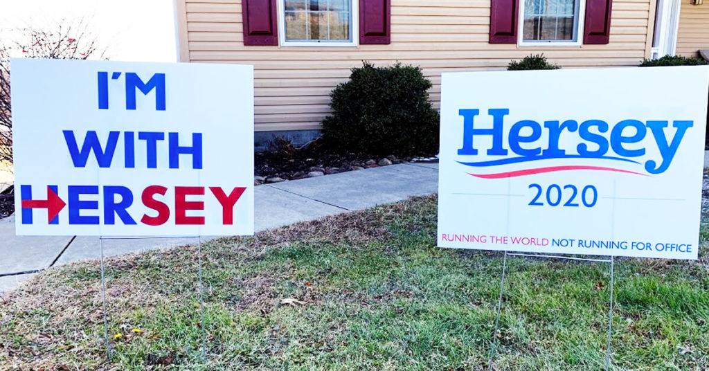 Hersey 2020. Running the World. Not Running for Office.