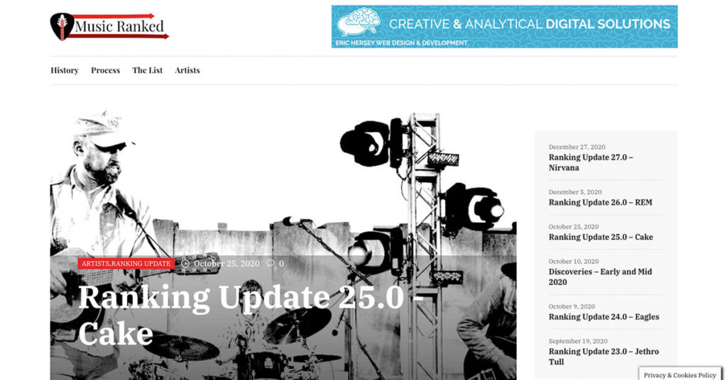 I created a website called MusicRanked.com a few years ago as a test to learn the new WordPress 5.0. I continued to work on the site as a hobby and soon realized that people on the internet was actually visiting and reading. The premise of the site is fairly simple: