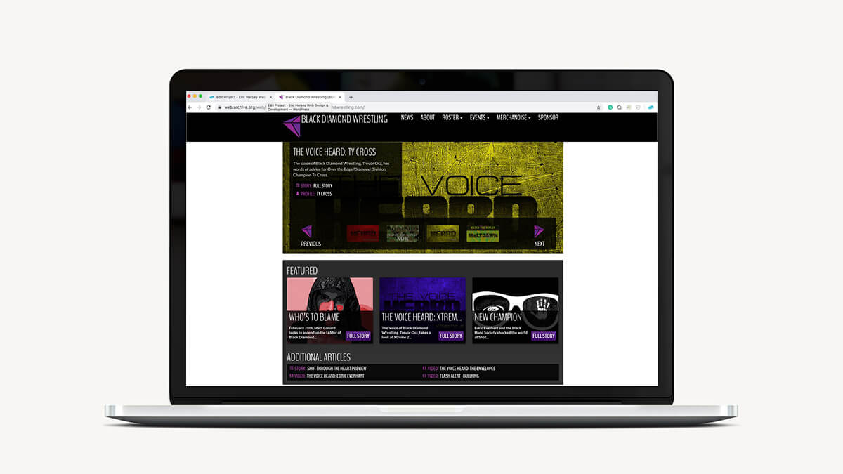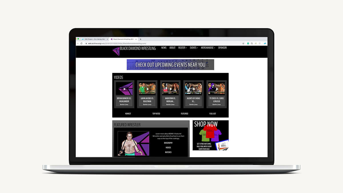 Black Diamond Wrestling (then based out of Wheeling, West Virginia) was operating with a freebie, make-it-yourself website. Webs.com, Weebly.com, and other free website tools serve their purpose, but it’s tough to take these sites seriously. Your brand is often reflected by your website. Putting money into your brand often tells your customers that “I am willing to pay for a good website because my brand is worth it”. I felt it was my duty and my way to pay-it-forward to make them a “paid” website.